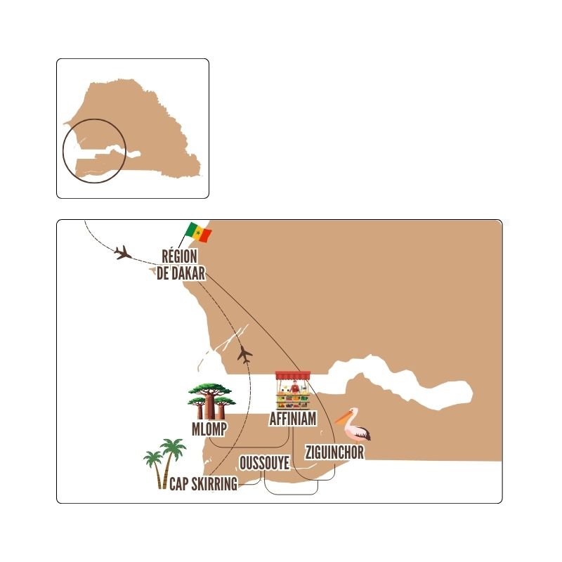 Puis, place à la détente : vous rejoindrez les plages lumineuses de Cap Skirring pour prolonger cette douceur en bord de mer.